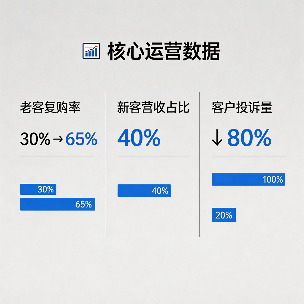 - 老客复购率:从30%提升至65%,沉睡老客激活率40%;